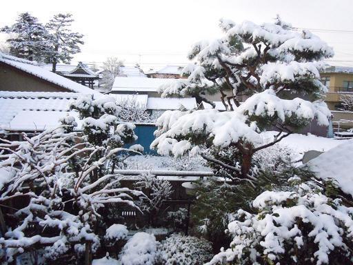 ★3月3日の朝の雪景色 帆山寺 門前の松