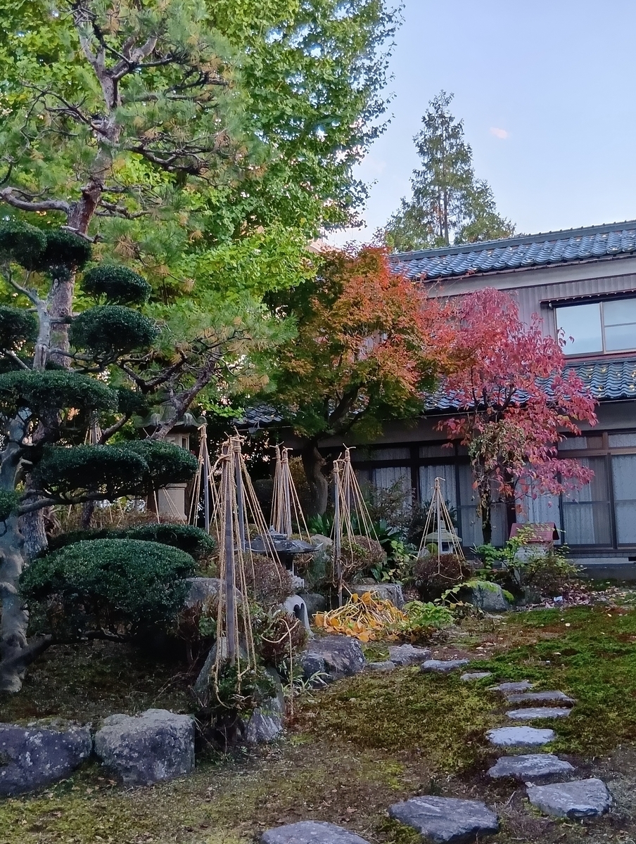 2025-11-28 帆山寺の銀杏紅葉と山桜 ★帆山寺の銀杏紅葉 昭和八年十一月に与謝野晶子が夫の鉄幹とともに帆山寺に参拝し詠んだ歌 『帆山寺 寺内の長屋店あけて 物あきなえり銀杏ちるとも』 ★十月桜(帆山寺の中庭) 与謝野晶子が昭和八年十一月に夫の鉄幹とともに武生を訪れ詠んだ歌 『日野川の観音谷に秋に咲く山桜こそあわれなりけり』